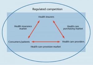 Figure 1 presents the regulated competition model. The circle around the elements represents the fact that all activities take place within a regulated environment. Within that are three markets: the health insurance market, the healthcare purchasing market, and the healthcare provision market. The reforms have not involved any budget cuts so far.